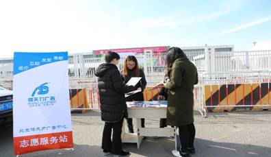 北京得天力广告中心组织青年志愿者在新国展展馆7号门口搭建志愿服务站,进行为期三天的“学雷锋、树新风、文明指引活动”,为“第二十三届墙纸布艺窗帘展”维护秩序、提供便民服务。活动过程中志愿者们热心为广大乘客进行信息咨询、义务指路、乘车引导、应急处理等服务,共计接待咨询500余人次。