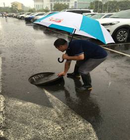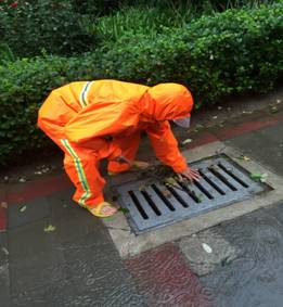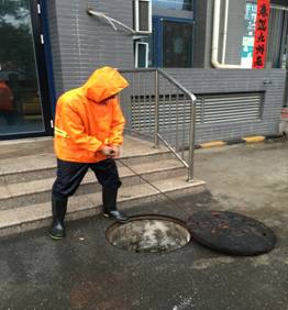 此次防汛工作,我公司共计出动防汛巡视队伍22组,进行雨中巡视96人次,清理雨水篦子610个,排查雨水井462处,清理单元门上排水管132次,清理雨落管107处。